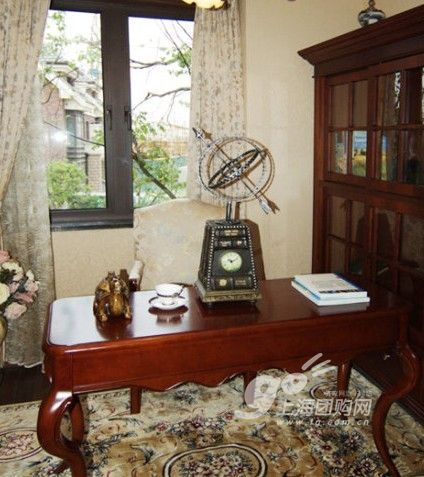 書房改造。書房由于是主人工作學(xué)習(xí)的重要場所,所以需要營造出嚴(yán)肅正經(jīng)的感覺,在家具方面,一般都會挑選美式或中式的,帶有文化感的紅木材質(zhì)書架與書桌,但是這樣的家具有時未免顯得過于沉重,讓人會有壓抑、喘不過氣來的感受。所以,在書房裝飾中,也不要忘了勞逸結(jié)合,才能事半功倍。在這里,設(shè)計師同樣使用一張地毯,就輕松軟化了書房過硬的缺點。這張地毯花樣繁復(fù),而且顏色較深,如果單看的話,會顯得有點過于復(fù)雜,顏色也比較暗淡;但是如果搭配上顏色較單一,形制較單調(diào)的家具,就正好揚(yáng)長避短,整間書房專業(yè)而不壓抑,成為工作學(xué)習(xí)的最佳場所。