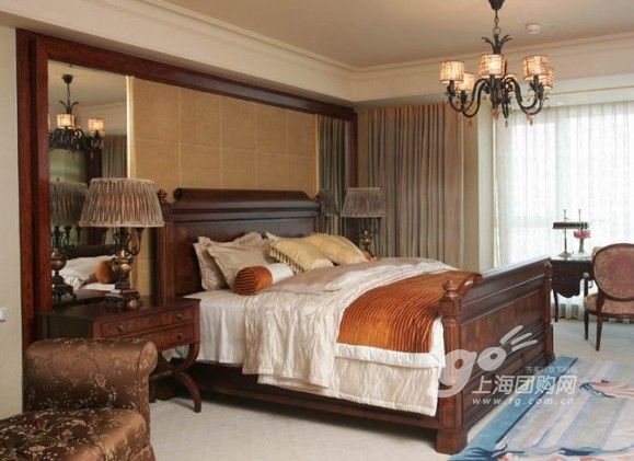 這間臥室的整體風(fēng)格帶有東南亞特色,咖啡色的純木材質(zhì),凸顯自然感受,但由于全套都使用了同色系的咖啡色系,在色彩搭配方面咖啡色稍顯過多,有些單調(diào),這時,鋪設(shè)一塊帶有地中海氣息的地毯,感覺為悶熱潮濕的東南亞吹來了一股清新的海風(fēng),令整個臥室立刻煥然一新。