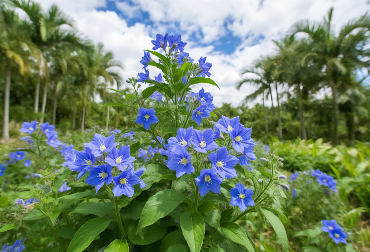 藍(lán)花茄喜歡溫暖、陽光充足的生長環(huán)境。它耐熱、耐旱,易于飼養(yǎng)。植物的枝條在整個生育期都長得很快,開花很快,花量也很大。