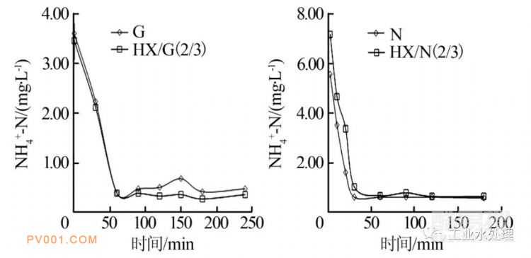 圖3為工業(yè)廢水對G和N污水處理廠好氧污泥硝化作用的影響。